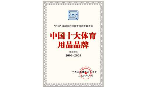 2017至2018年,球王会体育连续两年以第一名入围年度“中国轻工业健身器材行业十强企业”;2018年,球王会体育入驻平昌冬奥会“中国之家”,同年荣获“中国健身器材行业最具影响力品牌”。 From 2017 to 2018, Shuhua was named the "Top 10 Enterprise of Body Building Equipment Industry in China Light Industries " for the second consecutive year. In 20